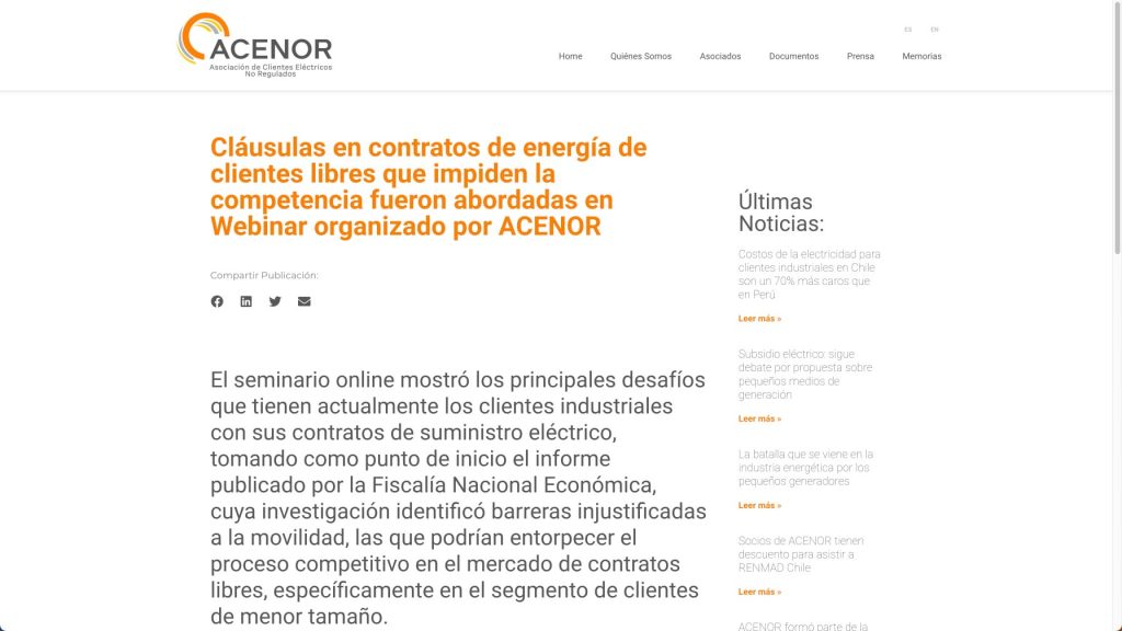 Cláusulas en contratos de energía de clientes libres que impiden la competencia fueron abordadas en Webinar organizado por ACENOR